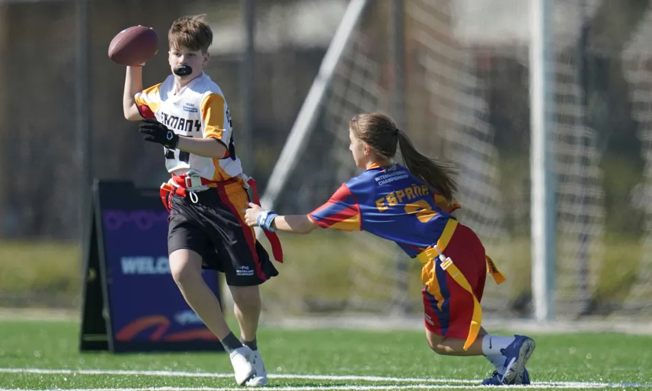 Flag Football und American Football haben viele Gemeinsamkeiten. Die jeweiligen Teams versuchen den Ball in die gegnerische Endzone zu bringen und mehr Punkte als ihr Gegner erzielen. Der Unterschied beim Flag Football: Hier wird auf Körperkontakt verzichtet und statt eines Tackles wird dem ballführenden Spieler eine Flagge vom Gürtel abgezogen. Das bedeutet nicht weniger Action, aber ein geringeres Risiko für Verletzungen und ein vereinfachter Zugang zum Sport für junge Menschen, wie etwa durch Schulprogramme.